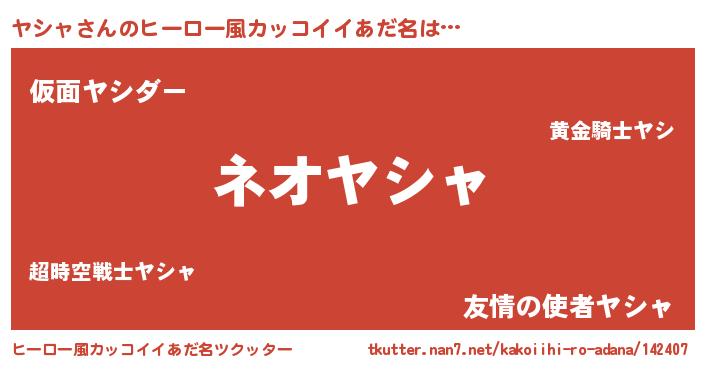 | 男性向けラノベタイトル風あだ名 | 『ヤシャという概念が存在しない退屈な世界 』 |