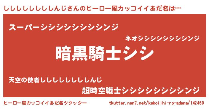| 胡散臭い通販商品みたいなあだ名 | 『信頼と実績のサプリメント…その名も「ししししししししんじ」』 |