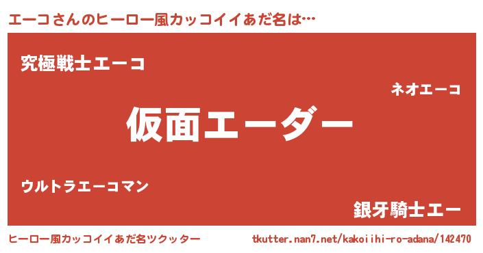 | 男性向けラノベタイトル風あだ名 | 『この素晴らしい世界にエーコを!』 |