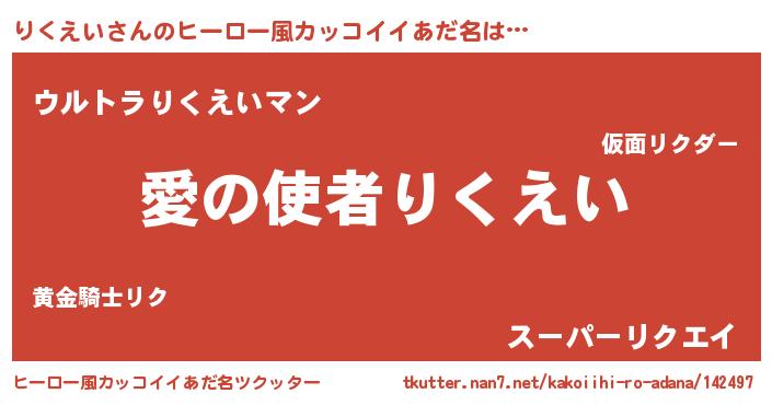 | 男性向けラノベタイトル風あだ名 | 『りくえいに滅ぼされるだけの簡単なお仕事です』 |