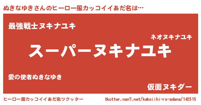 | 肩書あだ名 | 『ぬきなゆき御曹司』『ぬきなゆき総統』 |