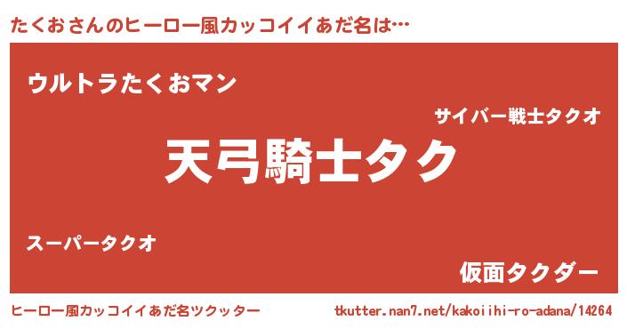 | 男性向けラノベタイトル風あだ名 | 『たくおの嫁は女の子じゃないと思った?』 |