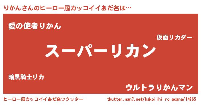 | 男性向けラノベタイトル風あだ名 | 『りかんの憂鬱』『魔弾の王とりかん』 |