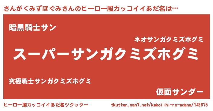 | 男性向けラノベタイトル風あだ名 | 『サンガクミズホグミアートオンライン』 |