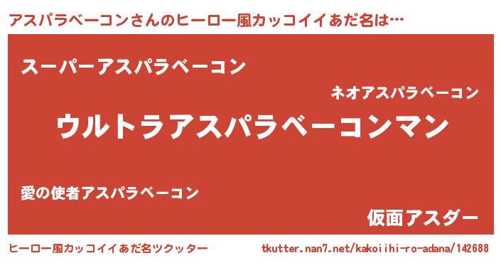 | 女子向けラノベタイトル風あだ名 | 『アスパラベーコンの玉の輿計画!』 |