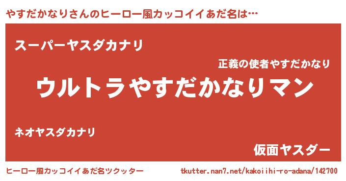 | 男性向けラノベタイトル風あだ名 | 『はたらくやすだかなりさま!』 |