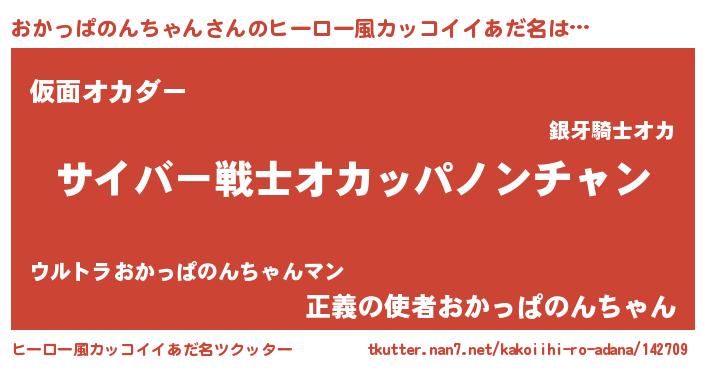 | 意味不明あだ名 | 『自称おかっぱのんちゃん』 |