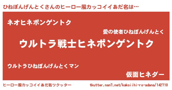 | 男性向けラノベタイトル風あだ名 | 『転生したらひねぽんげんとくだった件』 |
