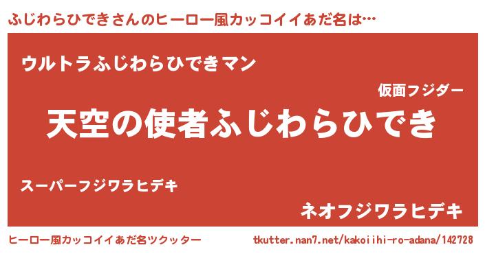 | 男性向けラノベタイトル風あだ名 | 『ノーゲーム・ノーフジワラヒデキ』 |