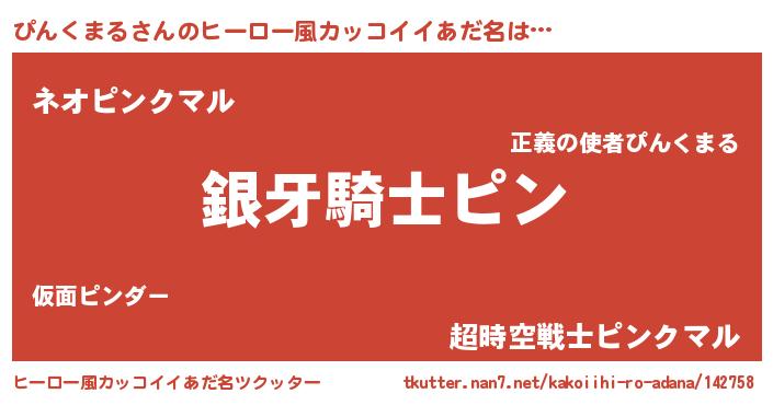 | 男性向けラノベタイトル風あだ名 | 『ぴんくまるの嫁は女の子じゃないと思った?』 |
