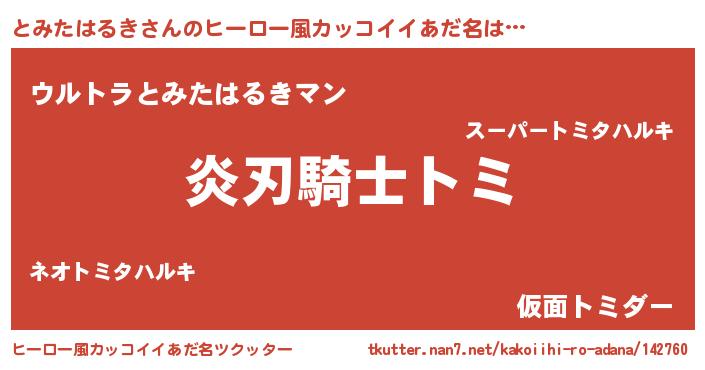 | 男性向けラノベタイトル風あだ名 | 『とみたはるきの嫁は女の子じゃないと思った?』 |
