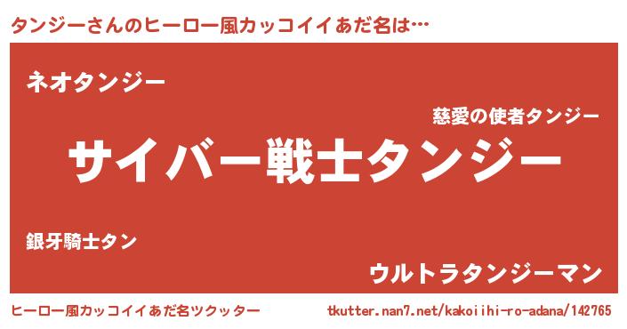 | 男性向けラノベタイトル風あだ名 | 『Re:タンジーから始める異世界生活』 |