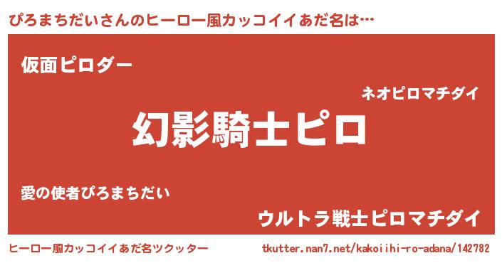 | 男性向けラノベタイトル風あだ名 | 『転生したらぴろまちだいだった件』 |