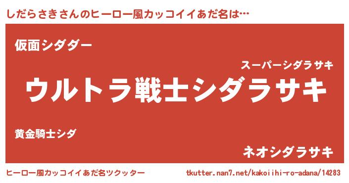| 女子向けラノベタイトル風あだ名 | 『しだらさきなんてお断りですっ。』 |