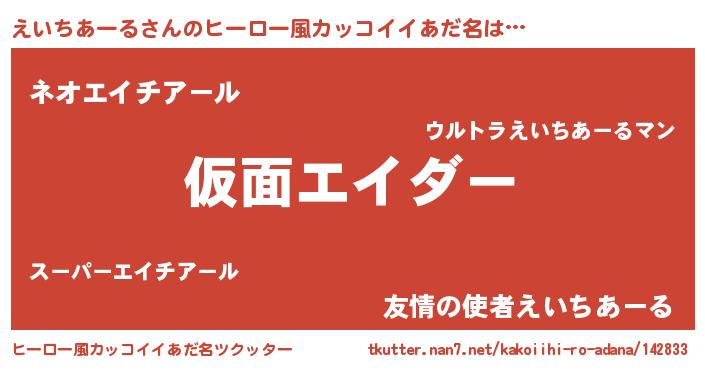 | 意味不明あだ名 | 『住所不定無職えいちあーる(13歳)』 |