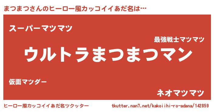 | 女子向けラノベタイトル風あだ名 | 『まつまつの雑貨屋さん』『闇のまつまつ』 |