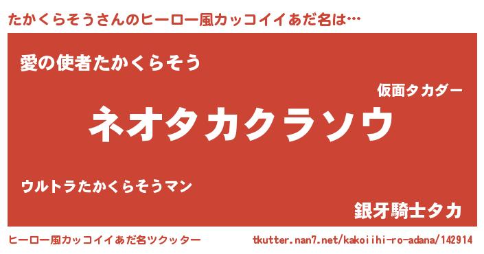 | 意味不明あだ名 | 『永久保存たかくらそう』 |