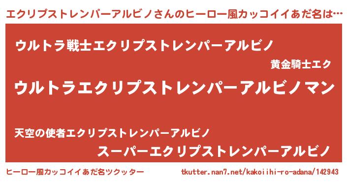 エクリプストレンパーアルビノさんのヒーロー風カッコイイあだ名をツクッター!