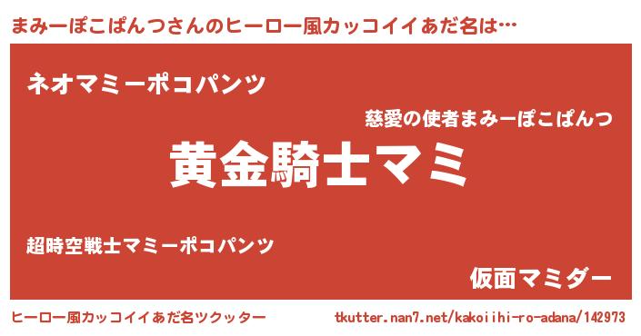 | 男性向けラノベタイトル風あだ名 | 『緋弾のマミーポコパンツ』 |