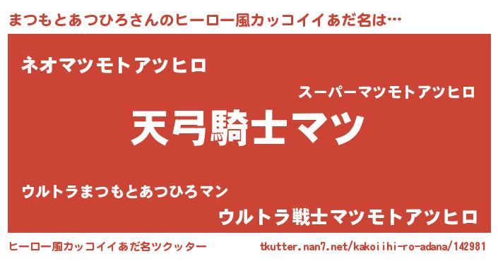| ポケモン風あだ名 | 『マツキング』『ヒマツモトアツヒロ』 |