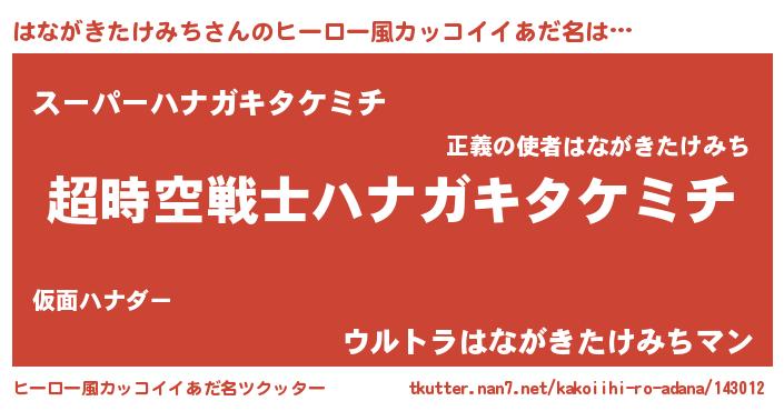 | 意味不明あだ名 | 『自称はながきたけみち』 |
