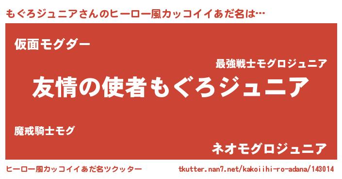 | 男性向けラノベタイトル風あだ名 | 『おまえをオタクにしてやるから、俺をもぐろジュニアにしてくれ! 』 |