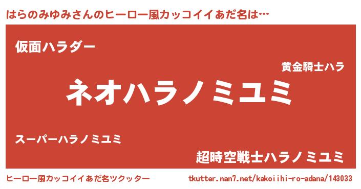 | ヘコむあだ名 | 『はらのみゆみ(遠い目)』『はらぷりん』 |