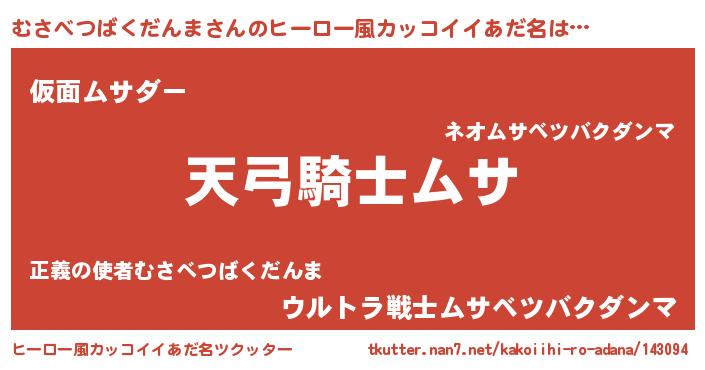 | 男性向けラノベタイトル風あだ名 | 『むさべつばくだんまの嫁は女の子じゃないと思った?』 |