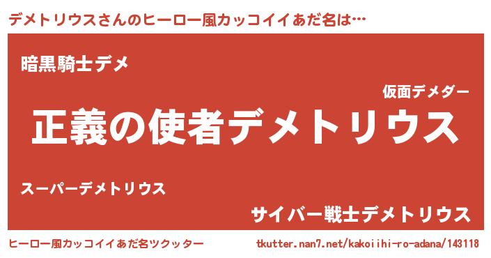 | 欧米人風あだ名 | 『ダニエルデメトリウス』 |