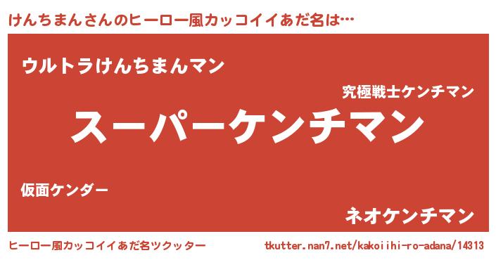 | 意味不明あだ名 | 『ペロリンけんちまん』『自称けんちまん』 |