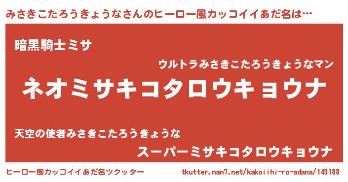 | ヘコむあだ名 | 『みさきこたろうきょうな(遠い目)』 |