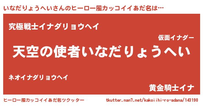 | 男性向けラノベタイトル風あだ名 | 『ノーゲーム・ノーイナダリョウヘイ』 |