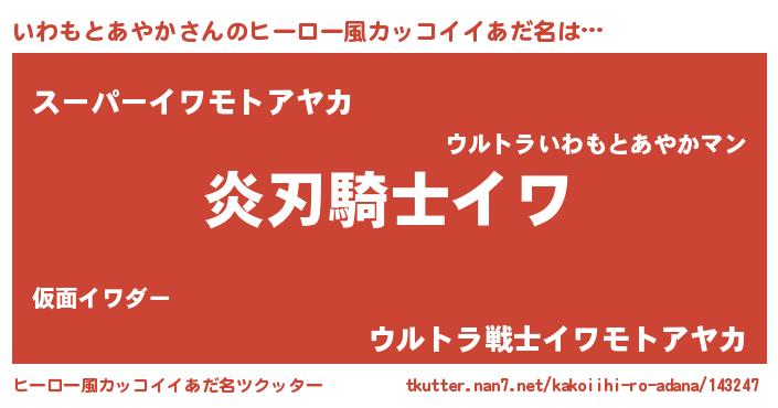 | 男性向けラノベタイトル風あだ名 | 『いわもとあやかの嫁は女の子じゃないと思った?』 |