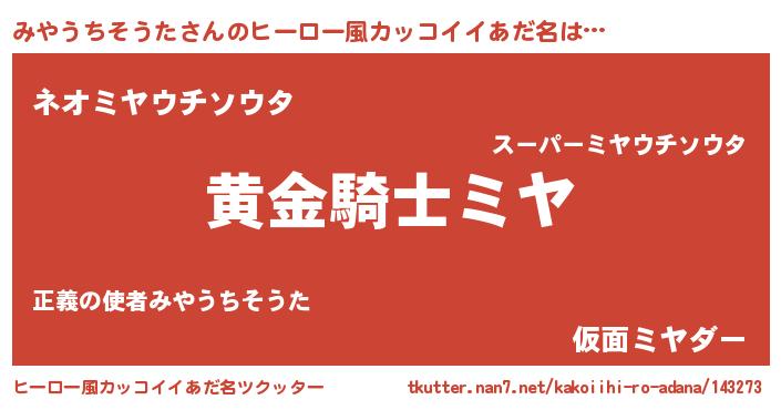 | ヘコむあだ名 | 『みやお』『みやうちそうた(苦笑)』 |