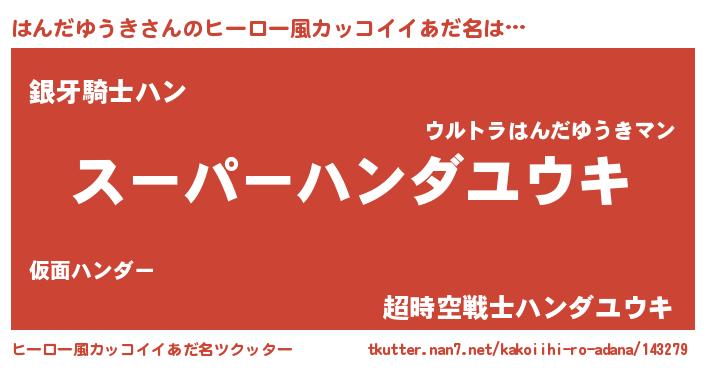 | 胡散臭い通販商品みたいなあだ名 | 『必ず成功するブレスレット…その名も「はんだゆうき」』 |