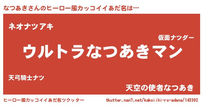| ファンタジー風あだ名 | 『エターナルナツアキー』『クインナット』 |
