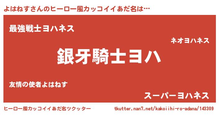 | 欧米人風あだ名 | 『ウサインよはねす』 |