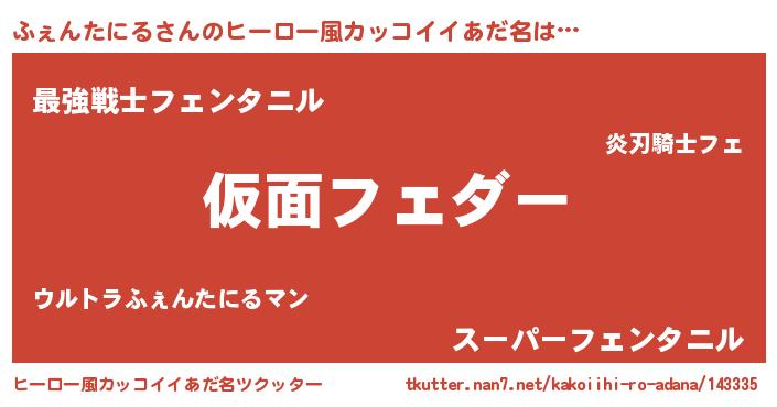 | 女子向けラノベタイトル風あだ名 | 『悪役ふぇんたにるに転生したようですが、知った事ではありません』 |