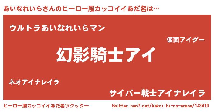 | 男性向けラノベタイトル風あだ名 | 『あいなれいらの嫁は女の子じゃないと思った?』 |