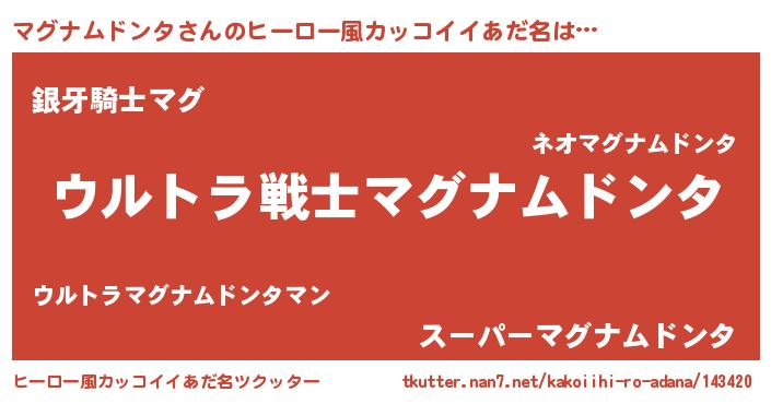 | 男性向けラノベタイトル風あだ名 | 『魔法科高校のマグナムドンタ』 |
