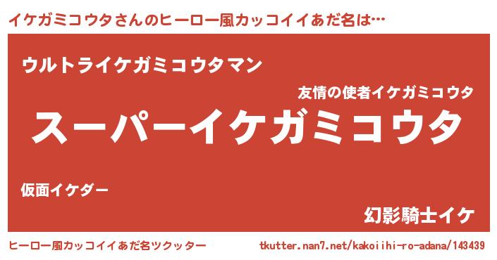 | 男性向けラノベタイトル風あだ名 | 『イケガミコウタアートオンライン』 |