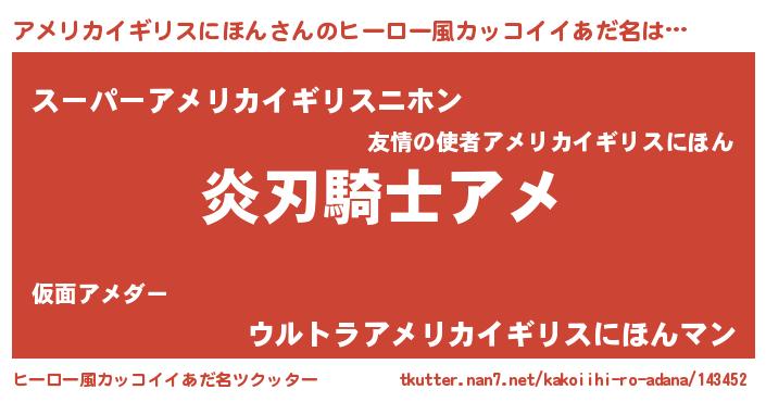 | 欧米人風あだ名 | 『アメリカイギリスにほん・ステッグマイヤー』 |