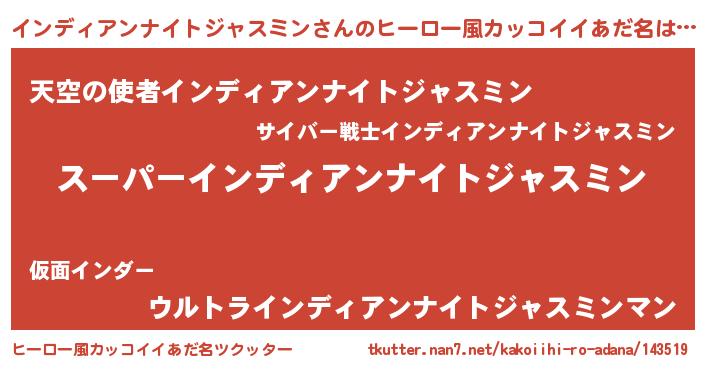 | 欧米人風あだ名 | 『マイケルインディアンナイトジャスミン』 |