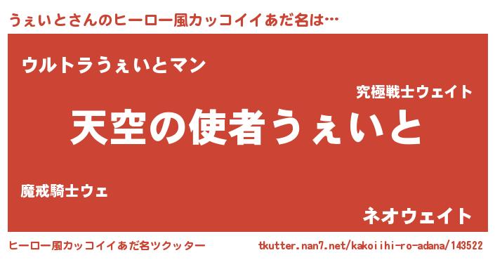 | 女子向けラノベタイトル風あだ名 | 『うぇいとの玉の輿計画!』 |