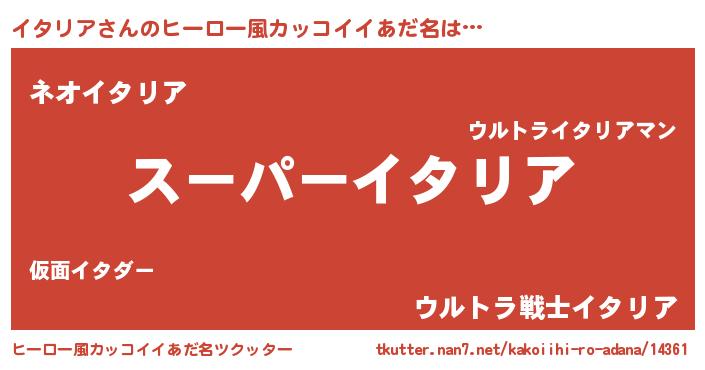 | 男性向けラノベタイトル風あだ名 | 『イタリアの憂鬱』『イタリアスレイヤー』 |