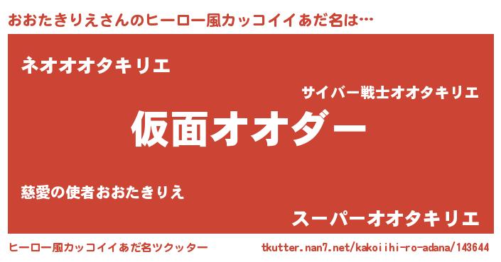 | 意味不明あだ名 | 『住所不定無職おおたきりえ(13歳)』 |