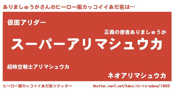 | ヘコむあだ名 | 『ありっふぃ~』『ありましゅうか(小並感)』 |