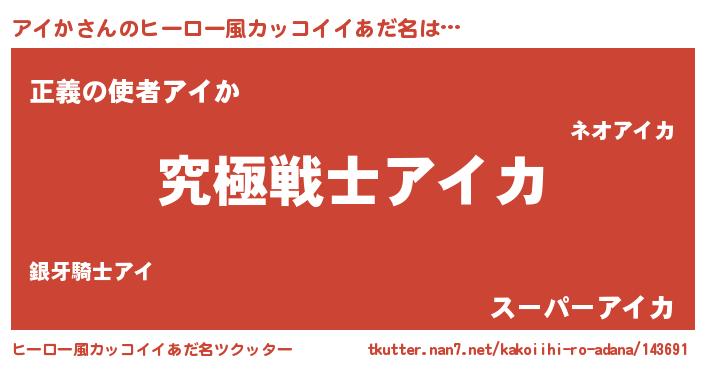 | 男性向けラノベタイトル風あだ名 | 『Re:アイかから始める異世界生活』 |