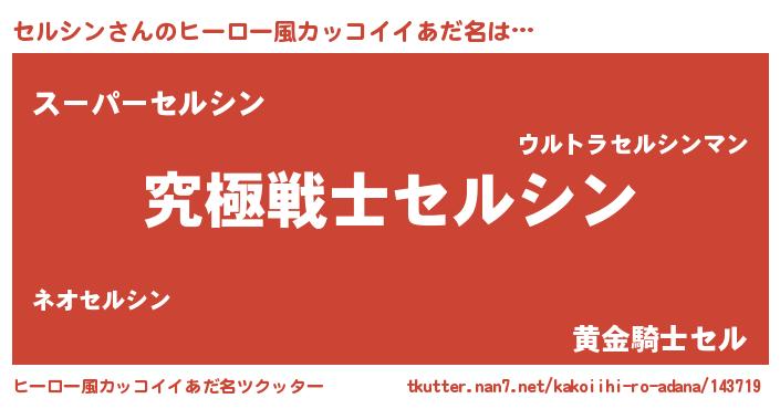 | 男性向けラノベタイトル風あだ名 | 『Re:セルシンから始める異世界生活』 |