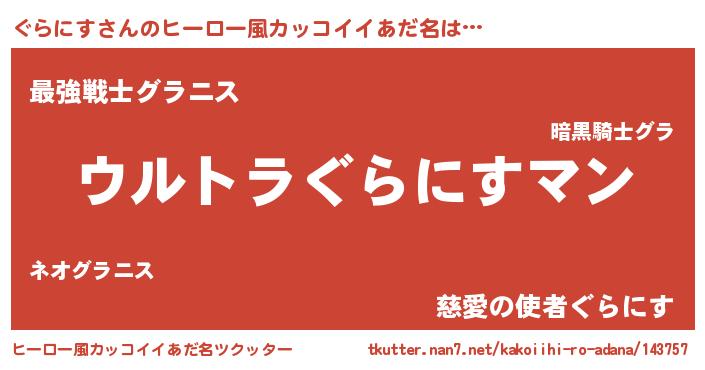 | 意味不明あだ名 | 『ぐらにすフォーエバー』『自称ぐらにす』 |